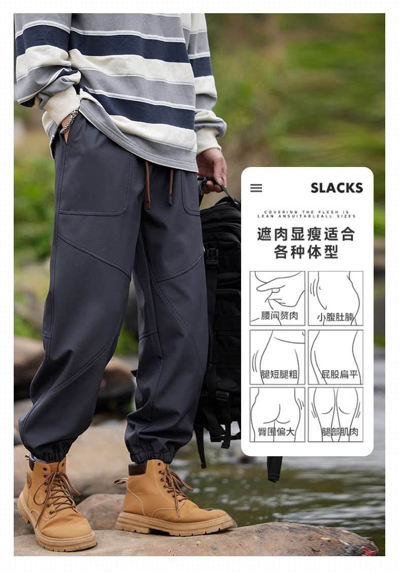 男士新款三防冲锋裤春夏季潮牌工装休闲裤子男款宽松束脚哈伦长裤