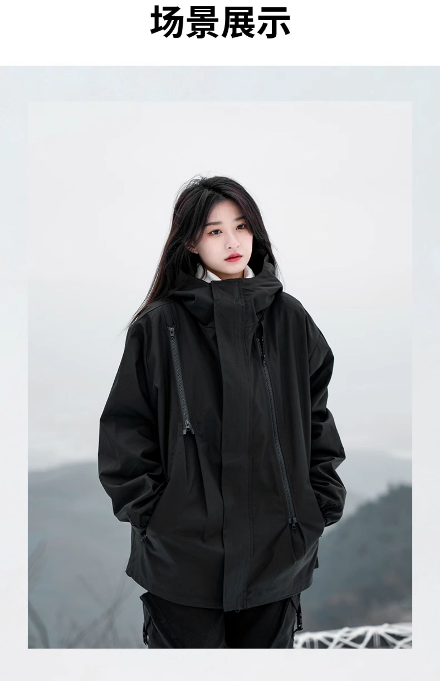 ppge冲锋夹克上衣春秋新款户外运动防水登山服拉链情侣大码外套