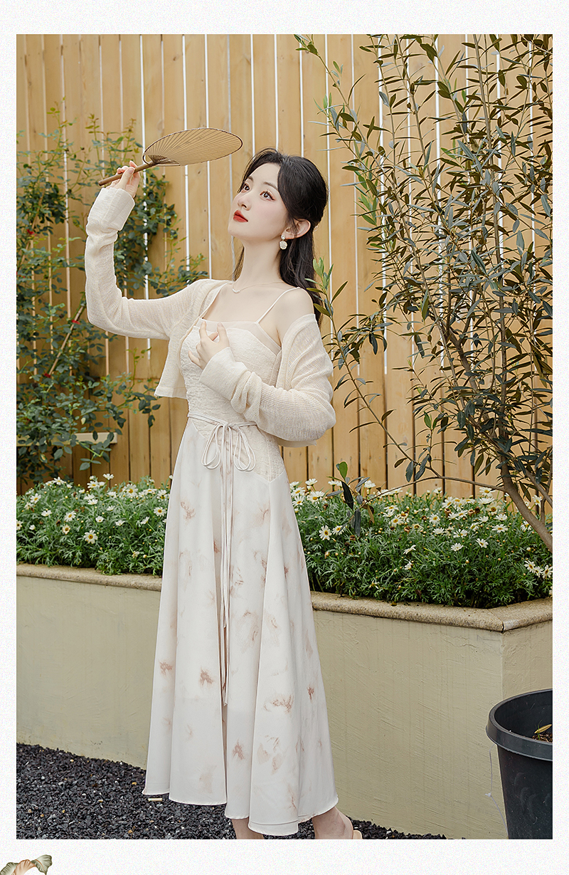 清冷新中式国风禅意印花吊带裙子法式吊带茶歇连衣裙女夏季高级感