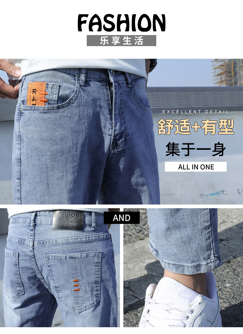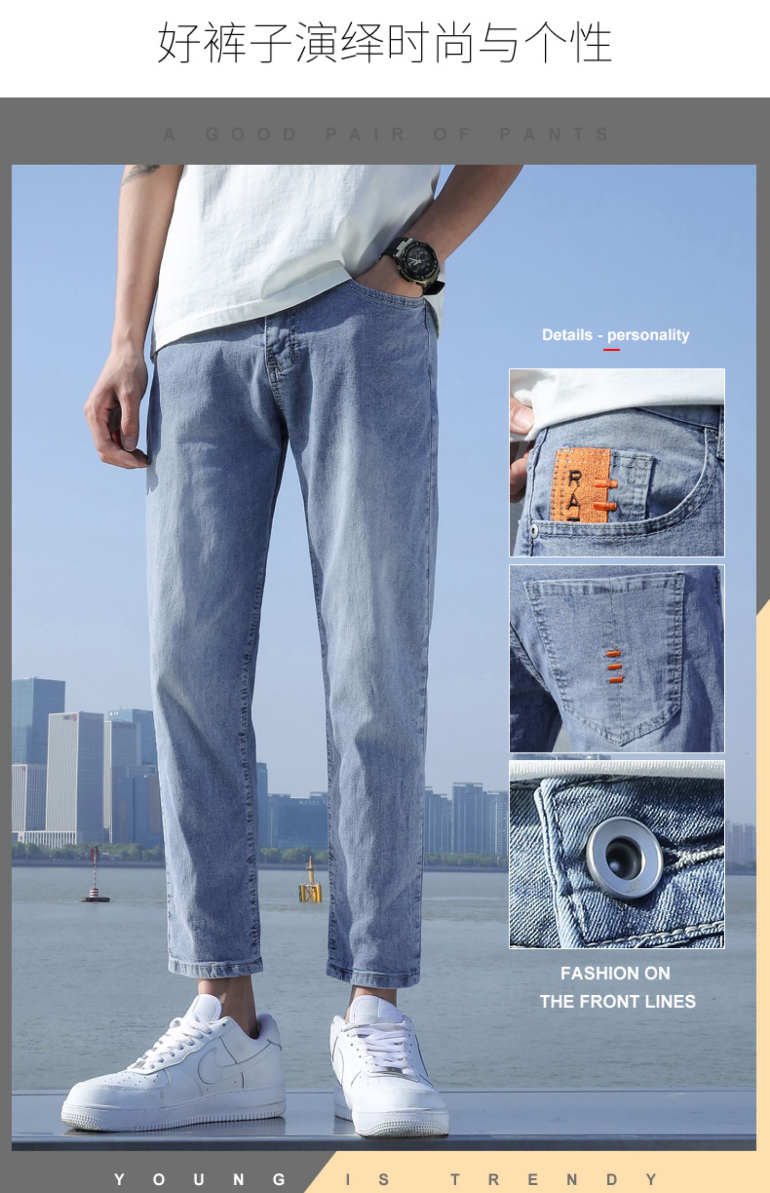 浅色牛仔裤男士夏季宽松九分休闲修身9分长裤子潮小脚弹力款潮流