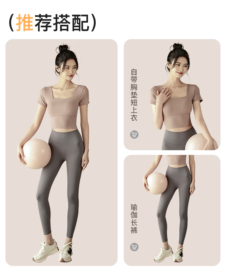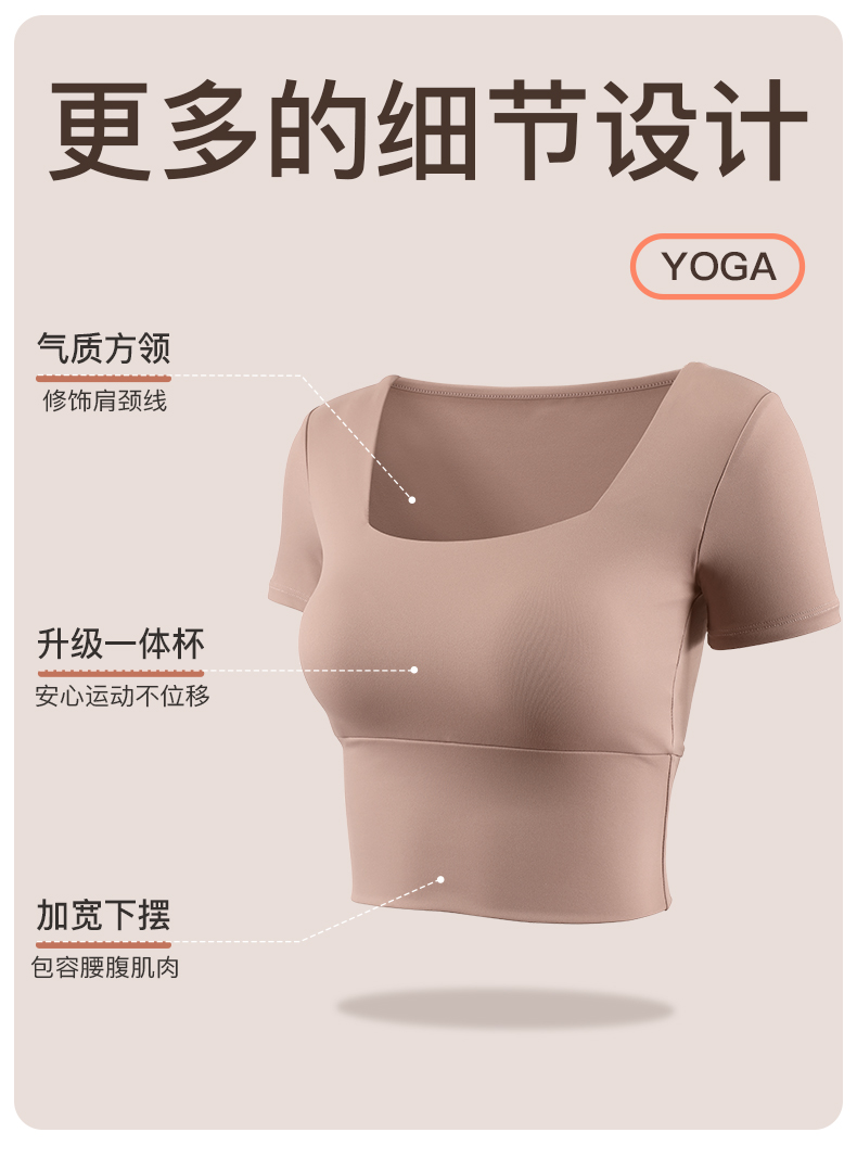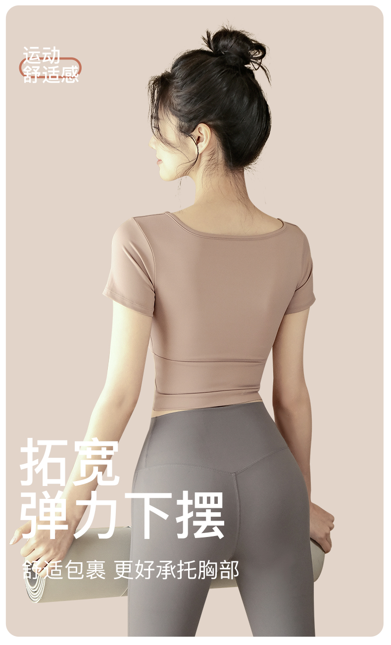 Ackdcs带胸垫瑜伽服短袖女夏普拉提训练健身上衣专业跑步运动T恤