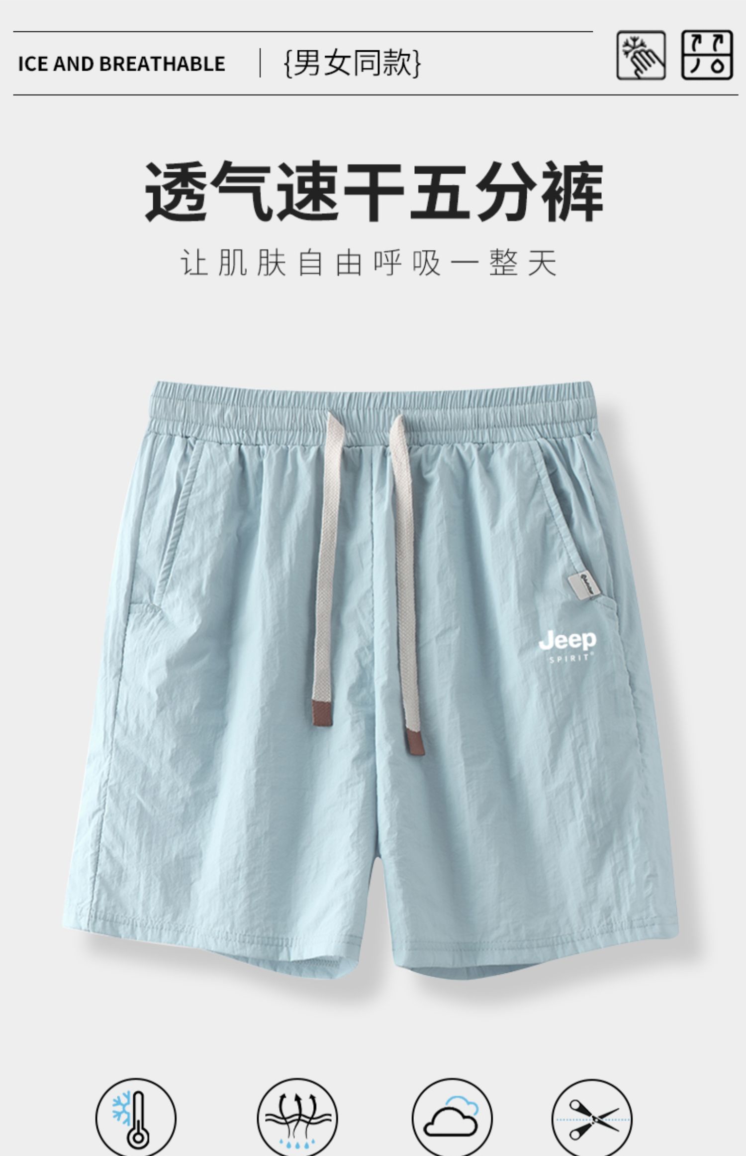JEEP短裤男夏季2025新款冰丝速干薄款五分裤休闲运动沙滩篮球中裤