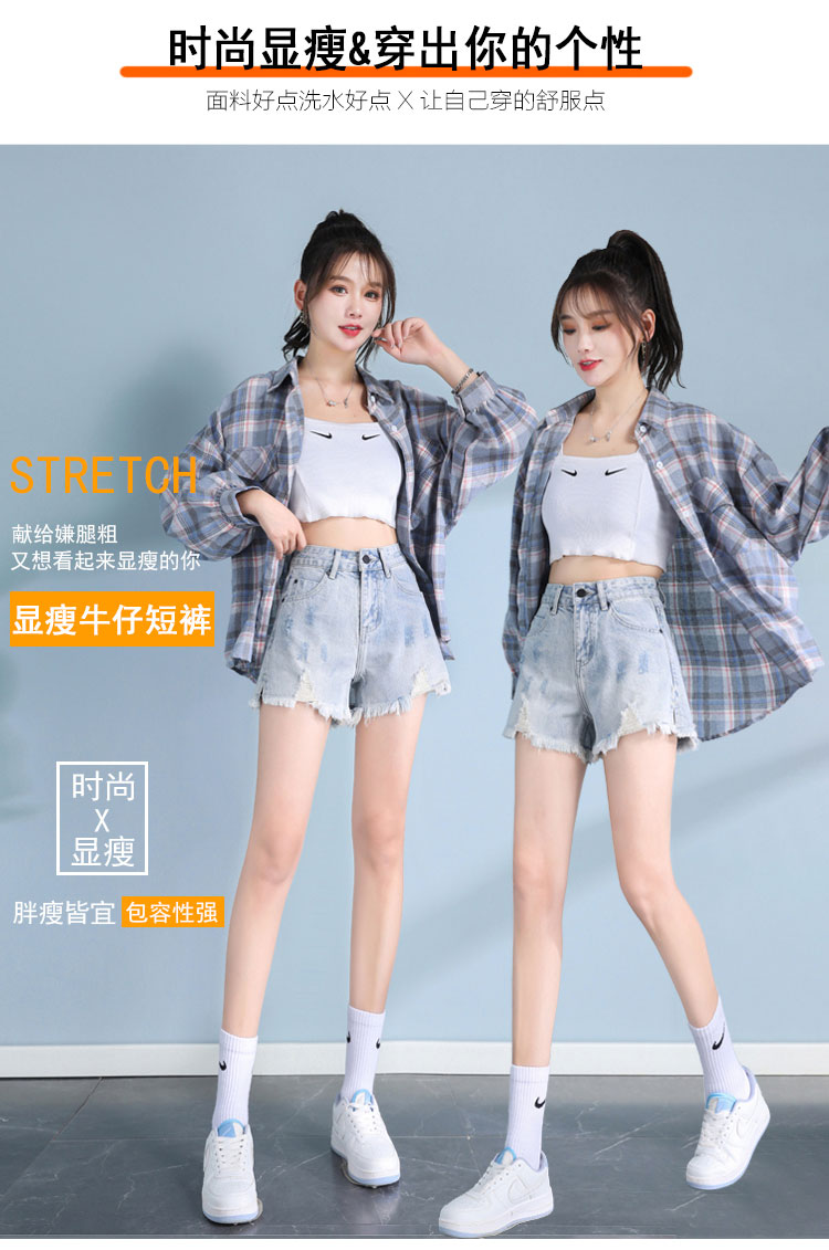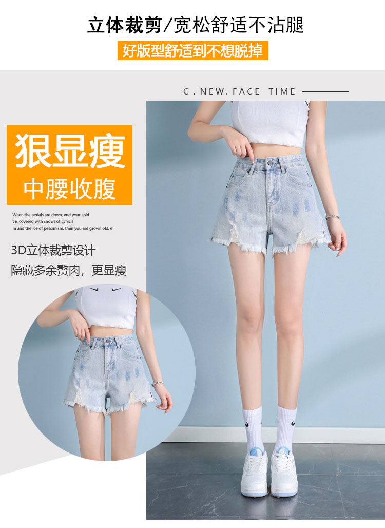 高腰牛仔短裤女破洞2025年新款夏季宽松显瘦a字阔腿辣妹超短热裤