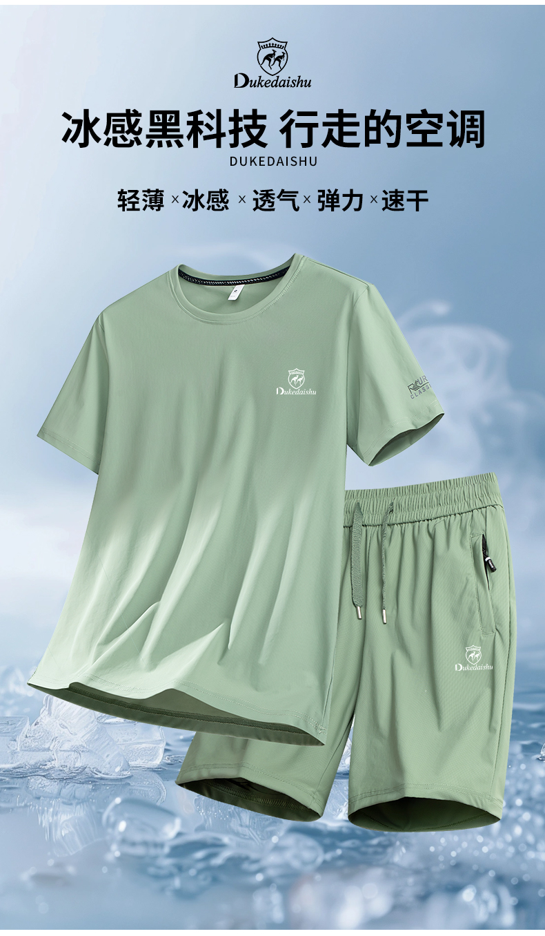 夏季薄款男士运动套装2025新款夏季高级感休闲凉感速干冰丝套装潮