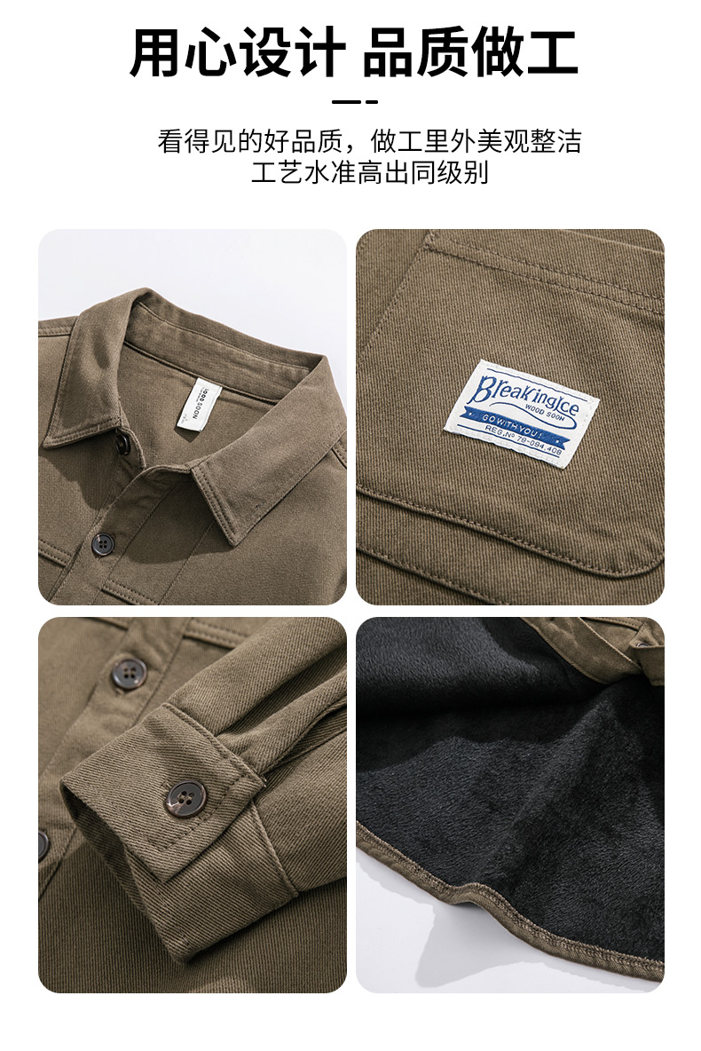 工装衬衫式外套男士春秋款休闲衬衣时尚宽松秋冬季加绒开衫夹克男