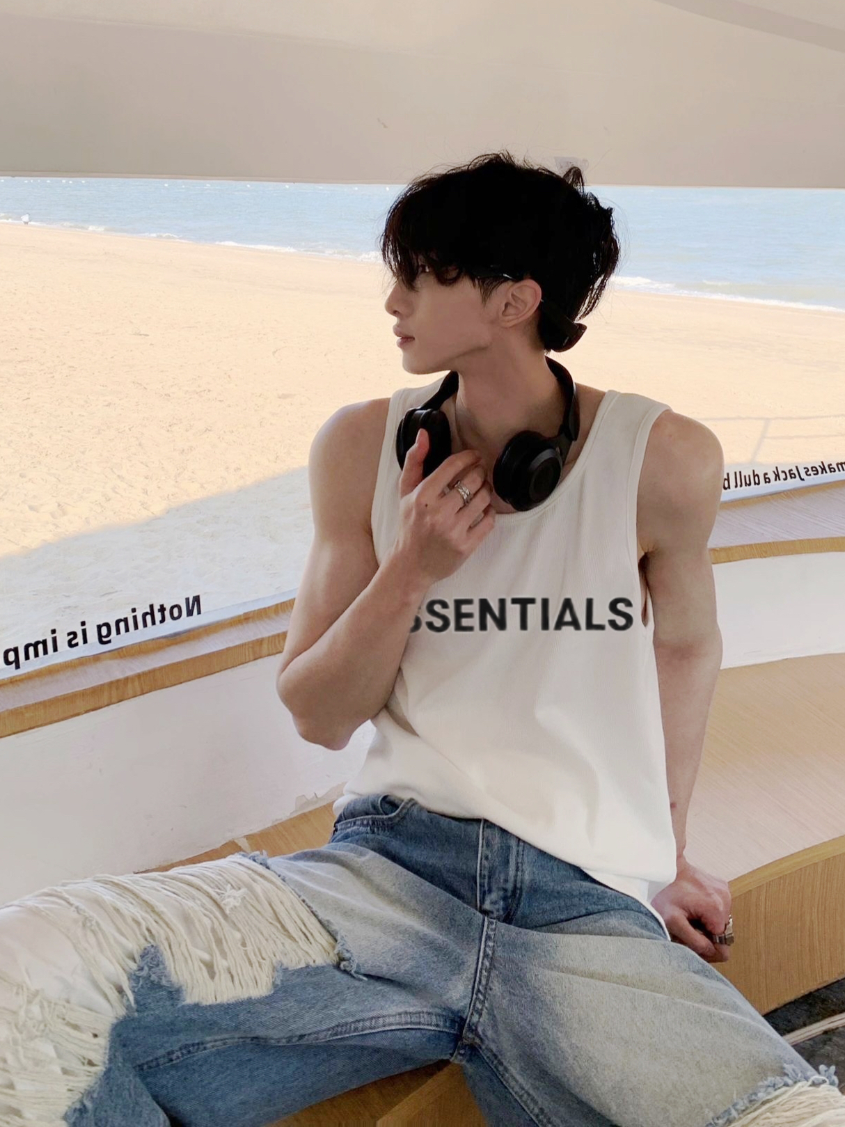 FOG短袖FEAR OF GOD复线ESSENTIALS胸前字母无袖背心打底衫男T恤