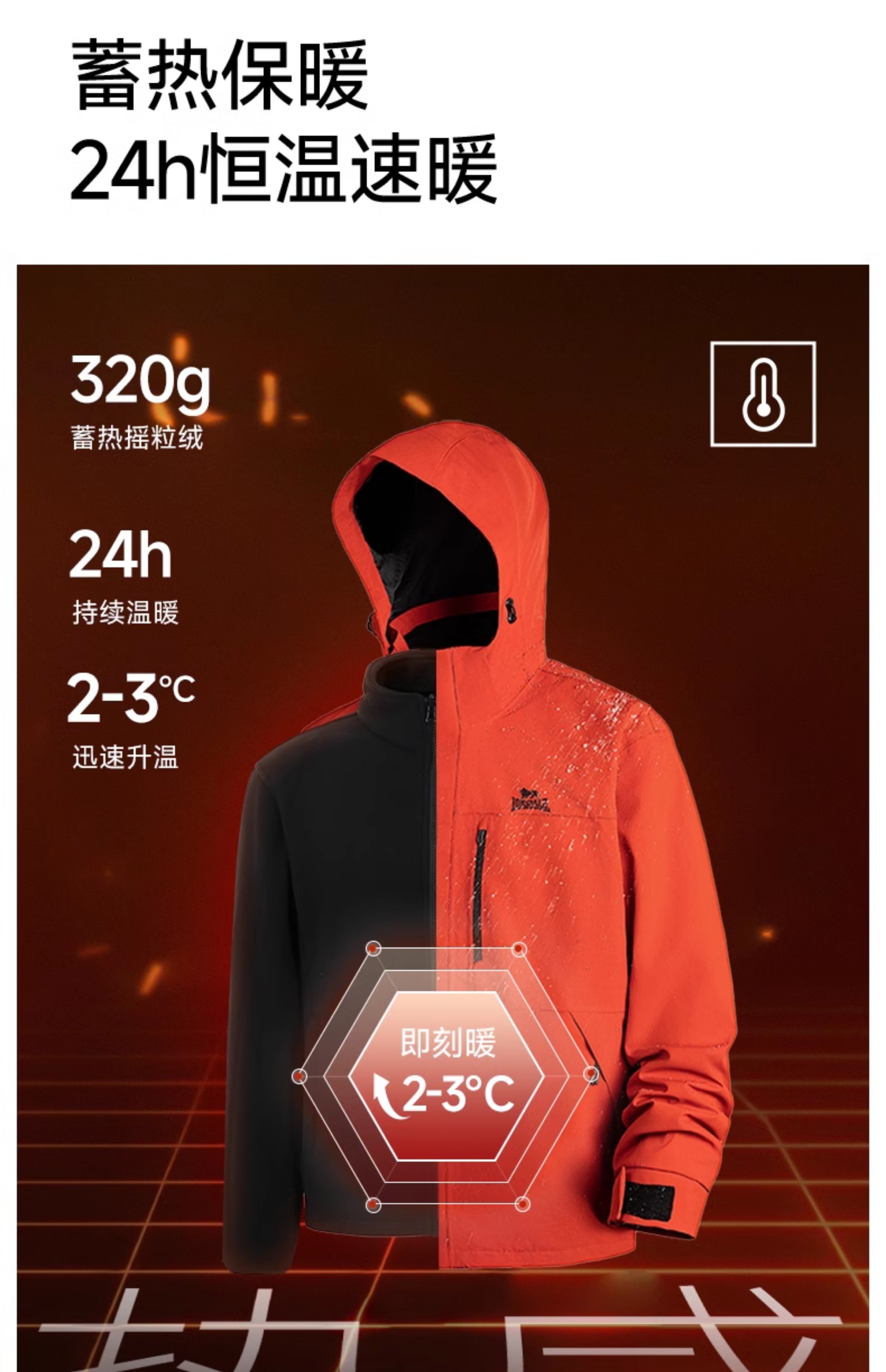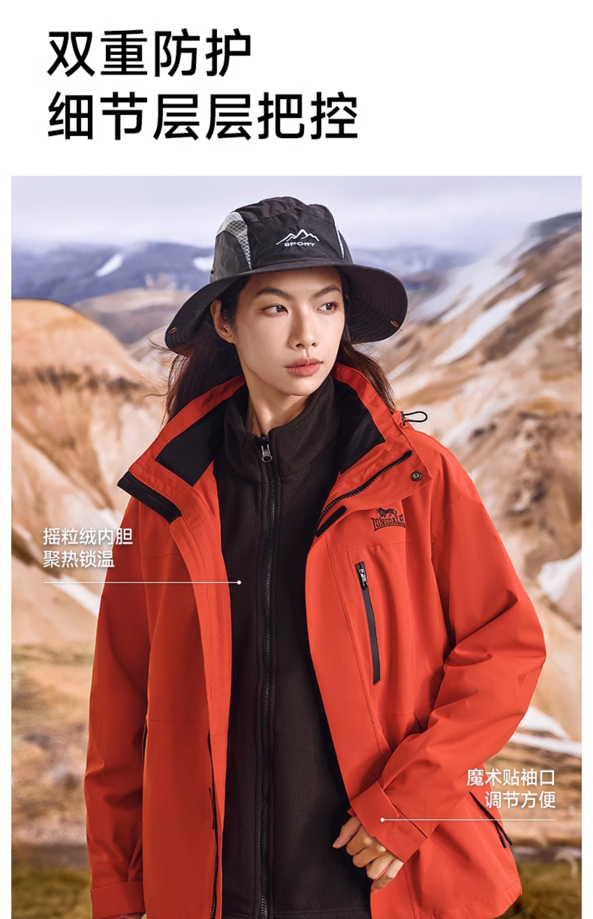 【朱雀红】龙狮戴尔冲锋衣户外三合一女可拆卸新款防风防水外套男