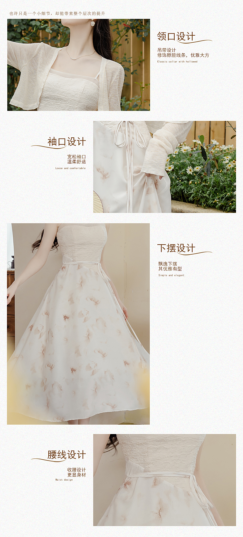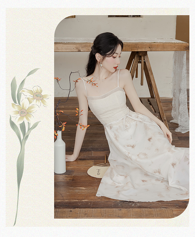 清冷新中式国风禅意印花吊带裙子法式吊带茶歇连衣裙女夏季高级感