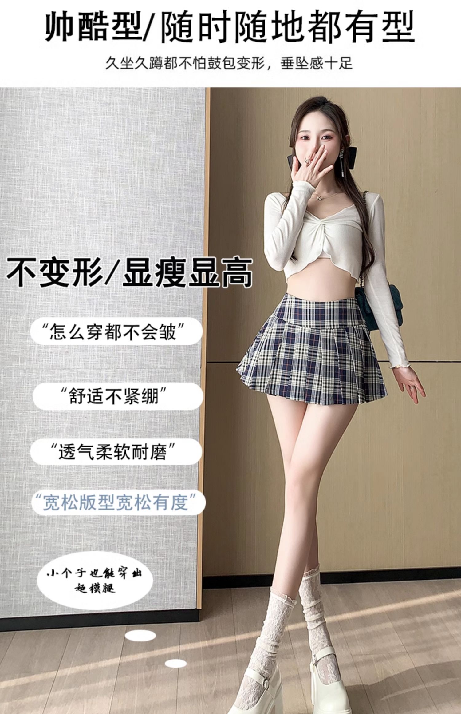 格子半身裙女2025新款春秋夏季高腰小个子辣妹a字百褶裙超短裙裤
