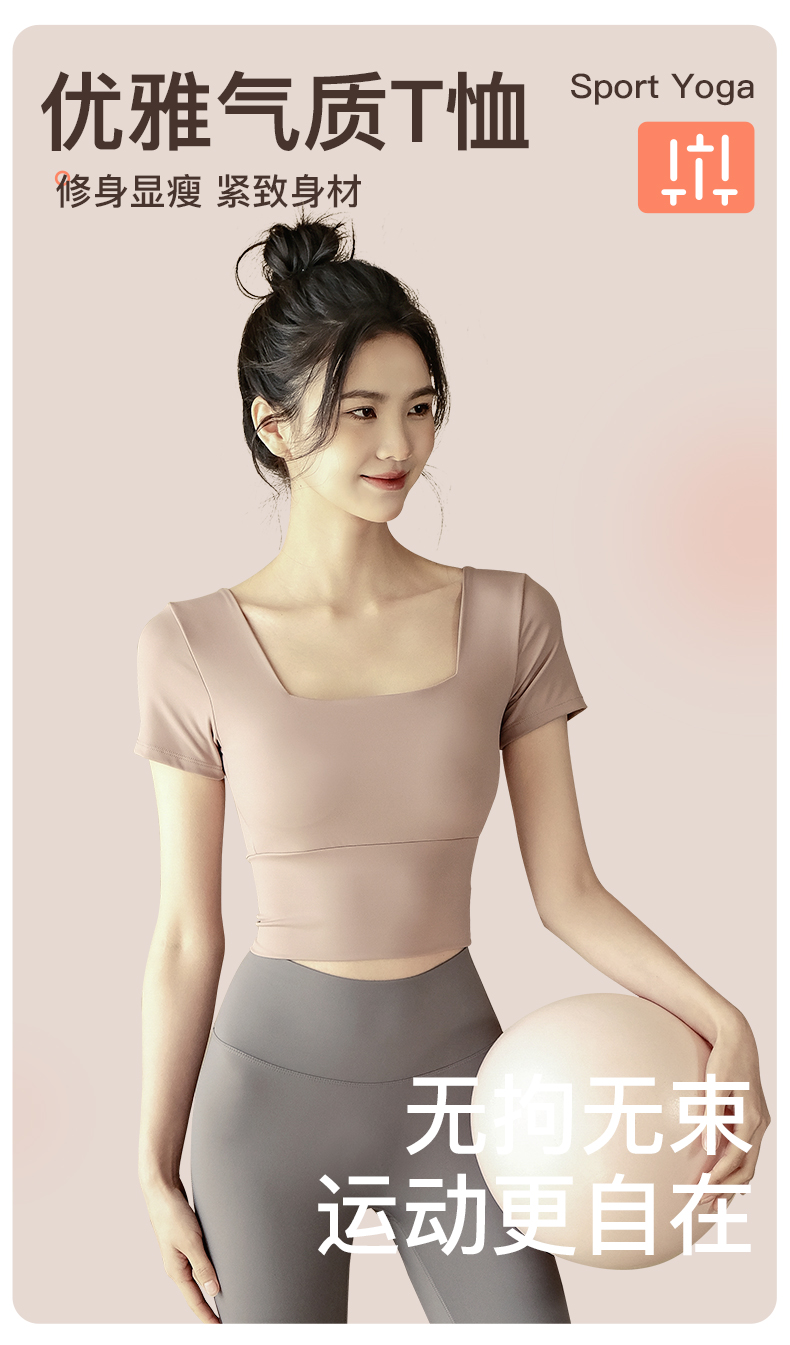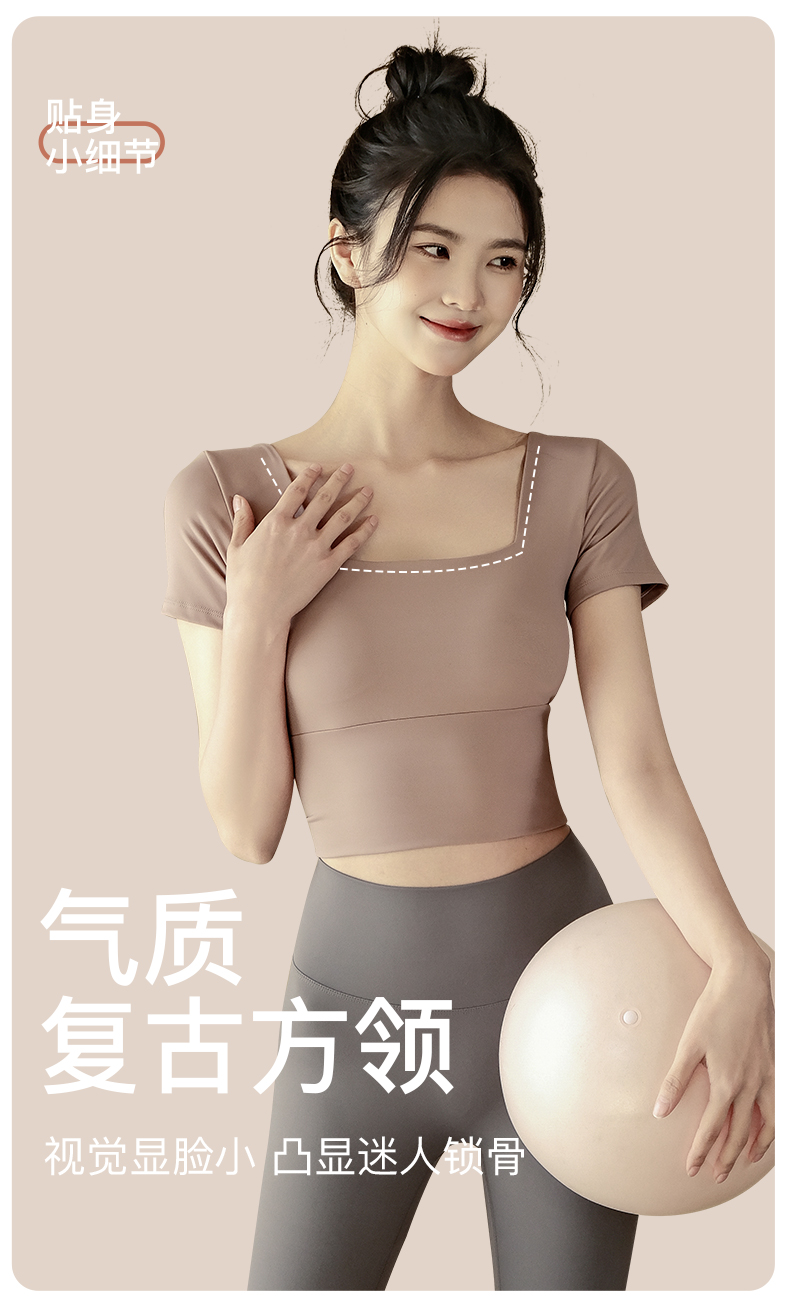 Ackdcs带胸垫瑜伽服短袖女夏普拉提训练健身上衣专业跑步运动T恤