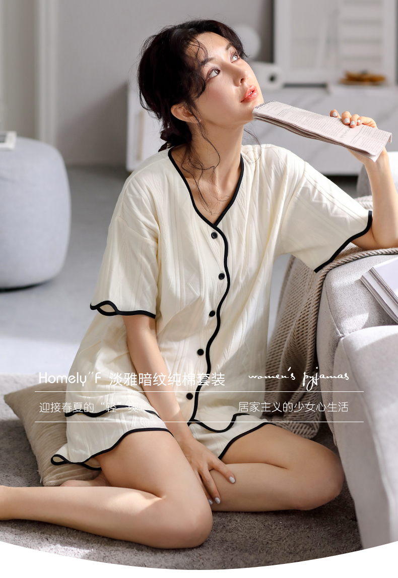 家乐芬睡衣女士夏季纯棉短袖短裤家居服夏天夏款薄款高级感女套装