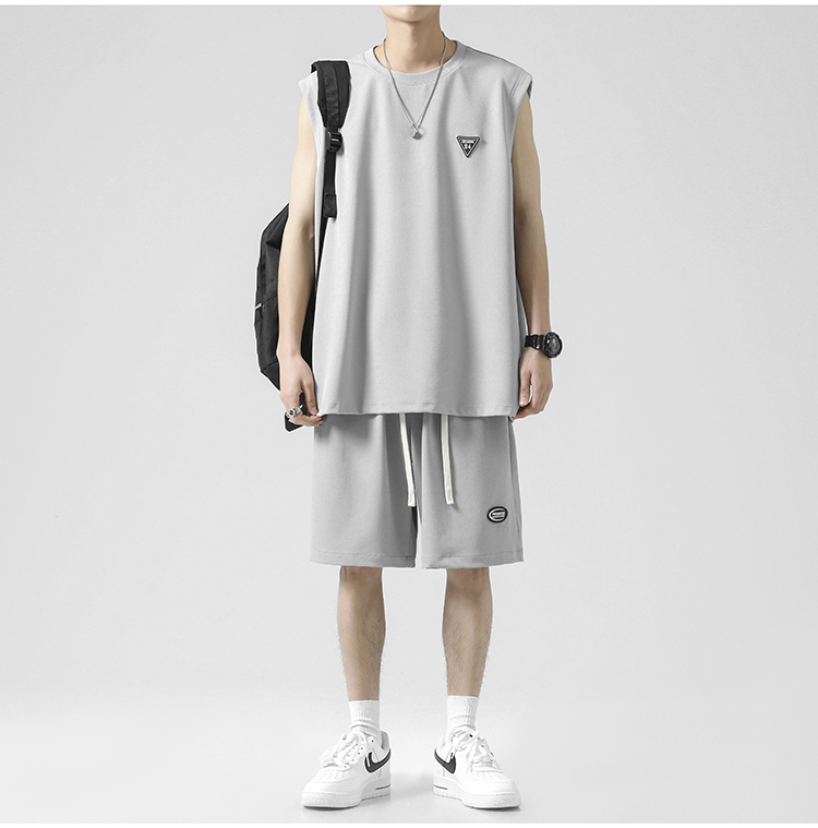 无袖t恤男士夏季薄款宽松冰丝短袖速干篮球衣服背心休闲运动套装