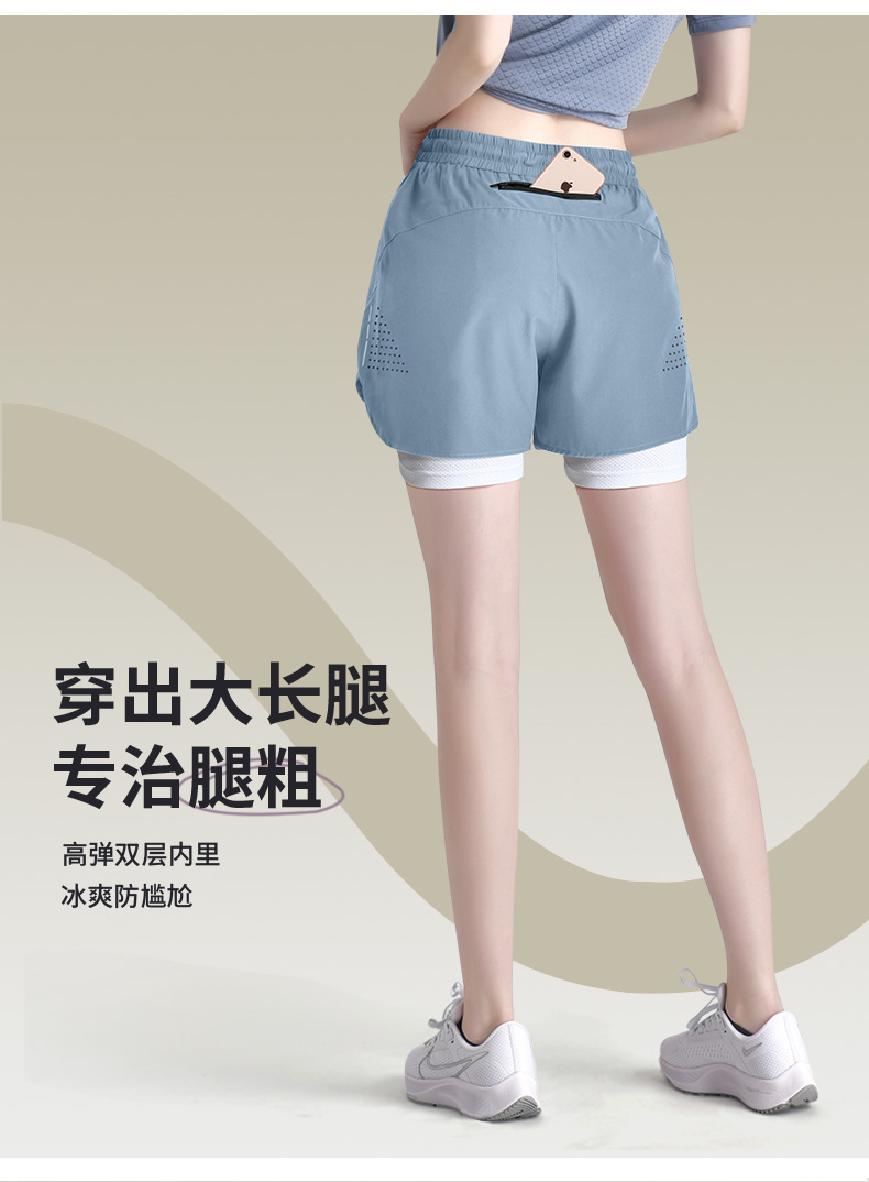 运动短裤女士跑步专用可放手机口袋防走光内衬体育健身中考三分裤
